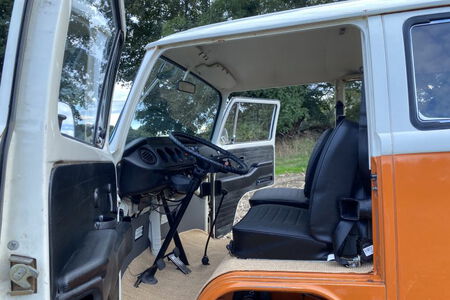 VW T2b 1974 Bus Leuchtorange-Pastellweiß