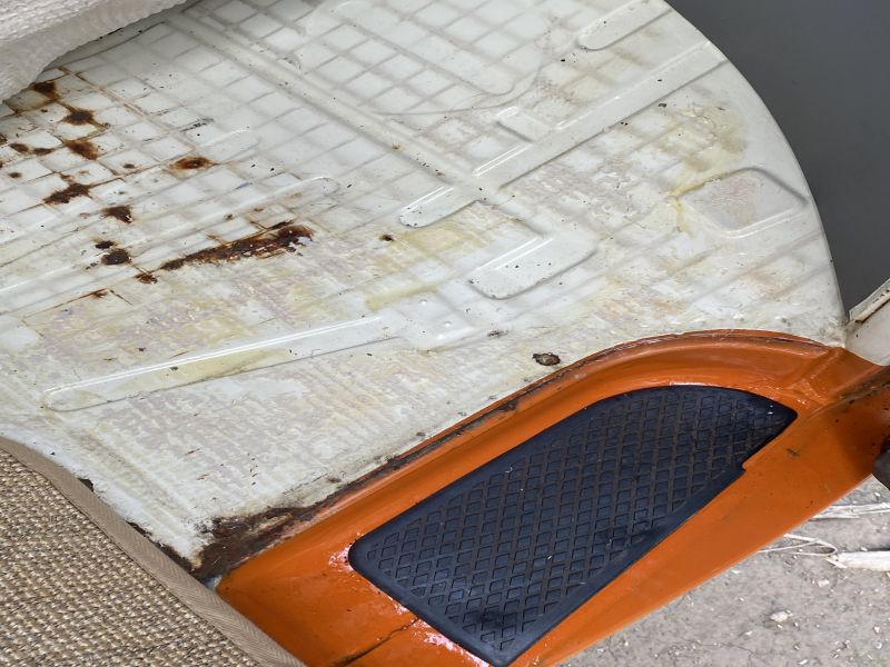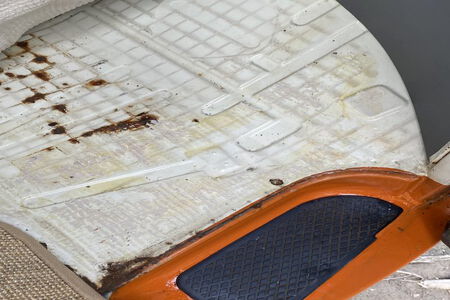 Die Karosserie ist, wie für die trockenen Staaten der USA typisch, in einem hervorragenden Zustand. Lediglich der Batterieboden und die äußeren Sitzbankmulden auf der Beifahrerseite haben wir durch einen Karosseriebauer instandsetzen lassen. Der Rest sieht kerngesund aus.