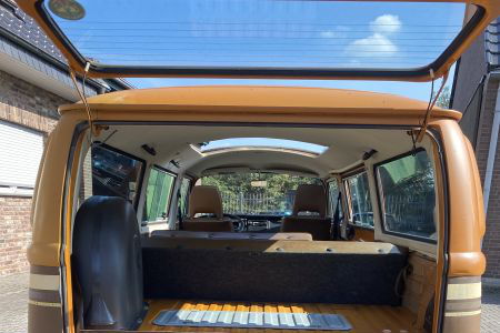 Der Bus hat die originale Farbkombination Achatbraun/Panamabraun, welche ausschließlich für die US-Exportmodelle erhältlich war. Der Lack selbst ist nur noch zum Teil der erste.