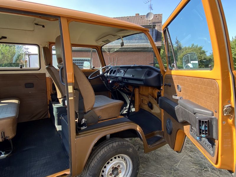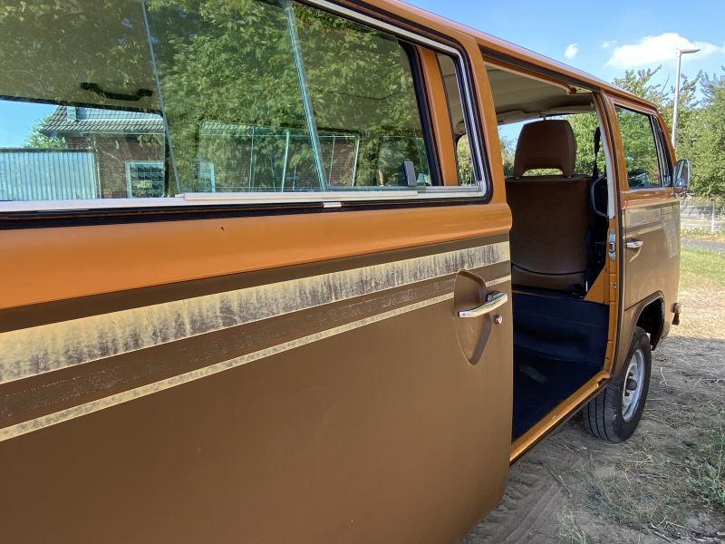 Angeboten wird ein VW T2b Fensterbus aus dem letzten Modelljahr 1979.
